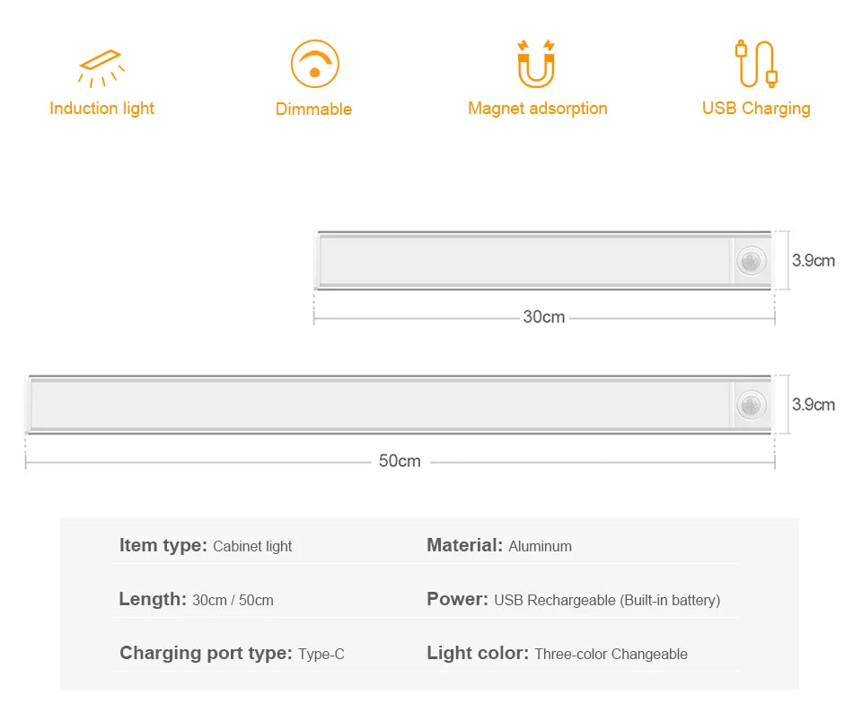 High Capacity Battery USB Rechargeable LED Light Bar Aluminium Motion Sensor Magnetic Strip For Stairs Closet Cabinet Night Lamp